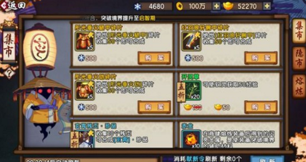 除了历练之外,游戏中的集市和神秘商人处也皆有几率。集市存在于商肆,玩家在主界面中进入商肆即可看到。集市中会随机出售各种物资,其中就有绝世装备碎片,遇见的玩家请不要犹豫!