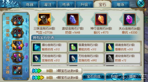 ④提升铭刻等级,建议攻击防御暴击命中类宝石优先。