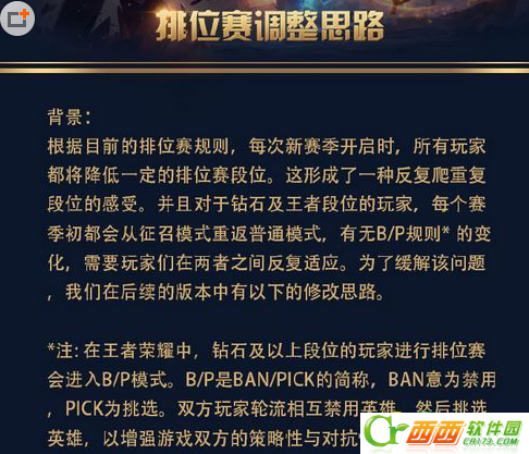 上赛季无排位对局记录的玩家不会再直接变成青铜三,而是按照最新的成绩进行特殊段位规则继承