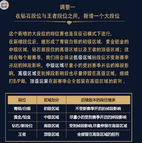 而且,新版段位赛继承规则中,会保证低级区域的段位不会受到新赛季开启的掉段影响。终极区域会收到小的新赛季开启影响,高级区域会尽量停留在高级区域,顶级玩家则会在新赛季中全部留在高级区域前列。