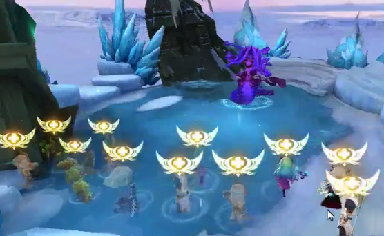 3人组队,尽量全部带远程英雄!因为boss会瞬移,再加上蛇行这技能,近战不好输出。需要2个人带圣堂牧师,另1个人带光明牧师(带库鲁德不好过哦,库鲁德的奶量毕竟没有我们萌妹子的高呀,破魔肯定是看上这点了!手动斜眼),2个圣堂在boss施放死亡凋零和海洋的朋友时,轮流放大招来抵挡伤害和控制!另一人能量满就聚气释放光明牧师的天使挽歌来回血,保持安全的血线,避免英雄因走位失误蛇行连续击中导致减员,提高容错率。