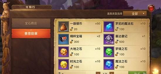可以兑换的物品包括银币、宝箱、曼达徽记、各种宝石