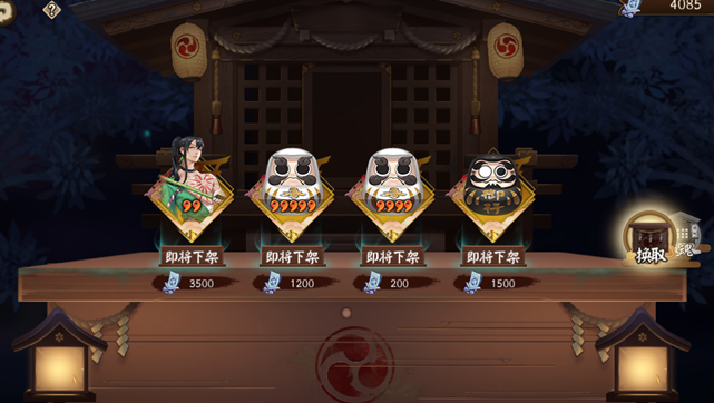 万年竹*1(3500御札)、5星奉为达摩*1(1200御札)、4星奉为达摩*2(200御札)、御行达摩*1(1500御札)