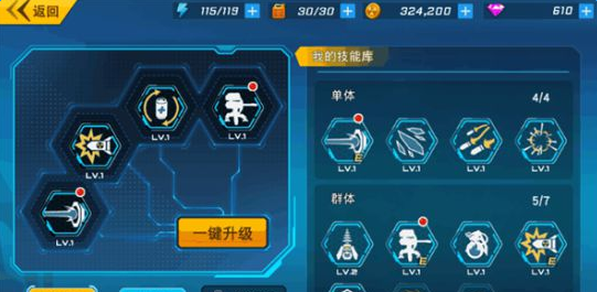 首先游戏分为六大类型技能,单体、群体、回复、控制、辅助、防御每一个都在不在同的地方起着关键性作用,大家要灵活运用哦!然后每一个章节分为精英和普通,接着分为5个关卡,每一个章节的最后一个关卡是直接打Boss,所以对于这些我们要选择不同的技能组合。
