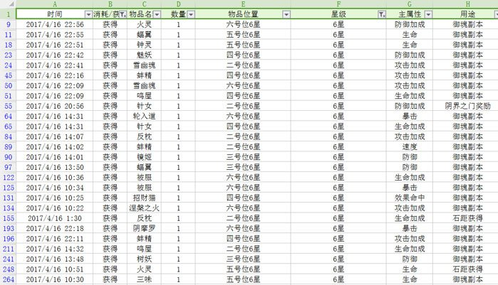 可以利用excel里面的统计排序等查看获得的6星御魂数据。