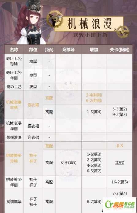 机械浪漫套装顶配分析和顶高配关卡:如下图