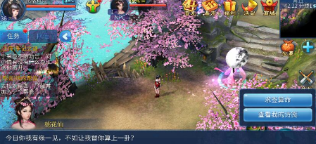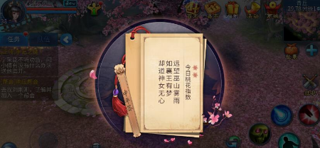 每天桃花仙会随机出现在桃花林,玩家可以前往桃花仙处占卜今日运势