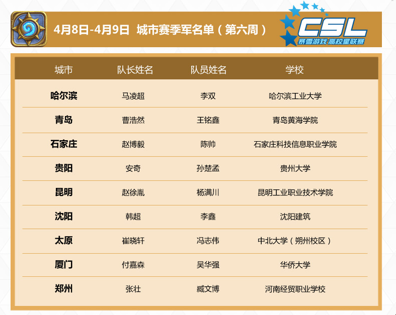 2017《炉石传说》高校星联赛春季赛总决赛将在5月正式揭开帷幕,象征高校星联赛最高荣耀的全国总冠军也将随之诞生。5月3日起,玩家可以投票支持心目中的冠军高校战队,赢取经典卡牌包,共同见证冠军的诞生!