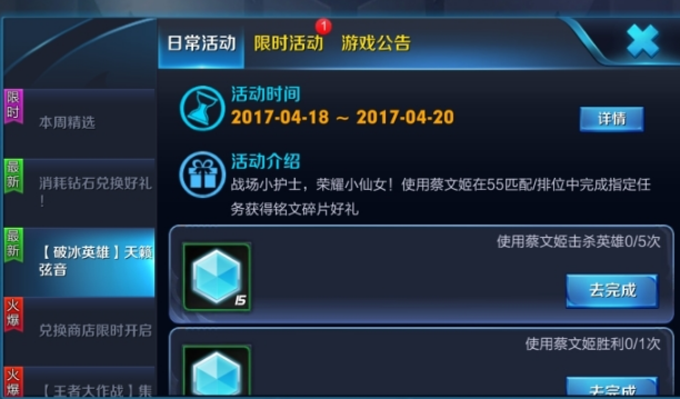 使用蔡文姬获得2场排位胜利,可获得铭纹碎片×30;