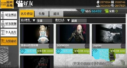 友情商店主要出售一些好友系统相关的外观内容,可以用钻石和友情点购买。单个背景及头像购买一次后会消息,不能重复购买。
