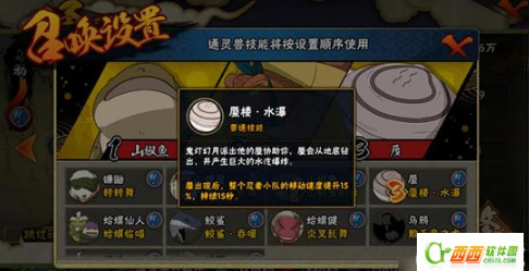 (这里的水遁·水龙卷也可以使用风遁·风沙阵代替,二者功效类似。只是风遁·风沙阵判定范围更大,且具有一定的吸附效果,但与此同时其冷却时间也更长)