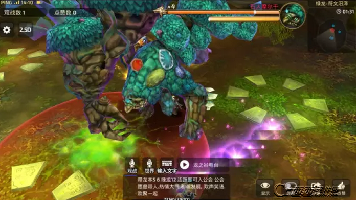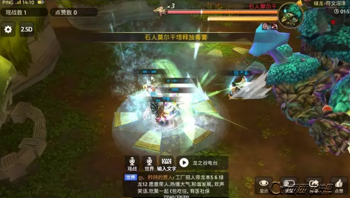 进去副本之后圣骑士上前挑衅BOSS,把BOSS拉着脸朝地图边缘比较好,然后其他小伙伴在BOSS身后输出,快到4X血的时候BOSS会释放第一次全屏毒雾,地图上总共有5个符文区,全屏毒雾的时候会在其中随机出现一个喷涌水柱的区域(类似于激活的符文区),这时候小伙伴们需要跑到激活的符文区里面才不会受到伤害。