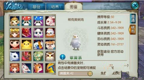 稀有黄焖鸡是一个登录送的宠物,属性比较一般。