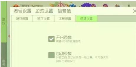 1、打开球球大作战“账号&设置”-“游戏设置”-“录像设置”勾选开启录像或者自动录像。