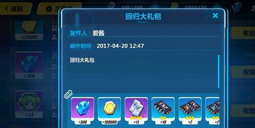 回归大礼包内容有:300水晶、100000金币、11个体力药剂、通用经验卡10、生物机械异能机械卡各2个