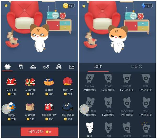 3、用户每天还可以给宠物喂食还可以买装扮与动作。