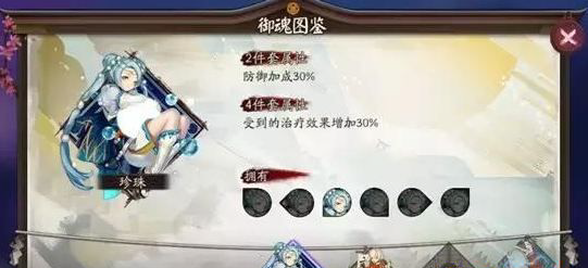 这是一个防御类的御魂组合。无论是2件套的防御加成以及4件套的被·回血加成,都是趋于自保。