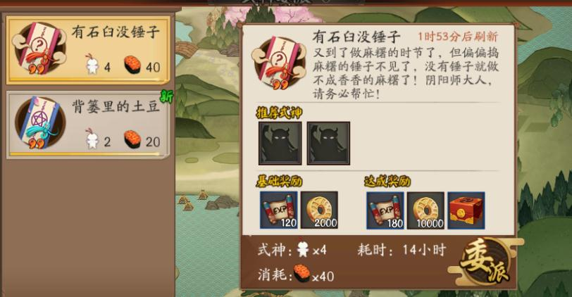 又到了做麻糬的时节了,但偏偏捣麻糬的锤子不见了,没有出资就做不成香香的麻糬!阴阳师大人,请务必帮忙!