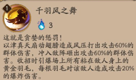 觉醒后这项技能加强:友方使用普通攻击带有黄金羽毛敌人时,以津真天有50%的几率进行协战。
