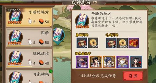 式神委派午睡的地方派遣式神推荐:犬神、九命猫、赤舌