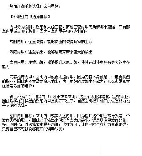 三种内甲分别是玄阴兽皮甲、烈阳兽皮甲和太虚兽皮甲,一个回血,一个输出,一个加防。一般情况下用烈火的,但是你有钱PVP肯定中间那个内甲和右面那个内甲轮流用,大部分人用中间那个加输出的,右边那个是克制中间那个内甲的,自己领会吧~