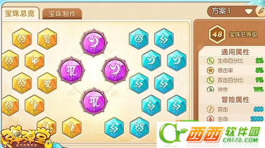 黄色宝珠稳定提升了我们的伤害,多了5%的暴击率也可以时不时为我们打出暴击的惊喜;蓝色方面尽量多选择了速度,毕竟自身生存能力比较薄弱,所以先出手也可以给对手带来1回合的火力压制。