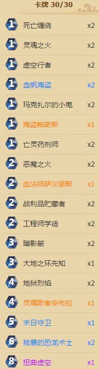 先说构筑,要想完成这个套路,我们想办法弃掉第一张恐龙术士,然后找第二张就行了。要想稳定弃掉恐龙术士,有两种办法,其一是手牌中除了法术只有恐龙术士,我用这个思路构筑了小明版的卡组,随从只有安布拉x1,恐龙术士x2,大表哥(死亡之翼)x1,其余全带法术,可以随便扔牌,大表哥是为了在魂火扔不准的时候掀桌子扔(当然如果前面扔掉大表哥也是可以接受的,生表哥,你懂的)。但是在实际对局中,由于key牌没到位,往往迫于现实压力,我不得不弃暗投明(你们为什么要逼我,呜呜~~),所以这个套路最终被我舍弃。第二种思路是快速倾泻手牌,让自己手里只卡着扔牌和恐龙术士,这样一来就能保证稳定扔,基于这个思路,我组了一套低费动物园版的,但是实际对局中,一旦安布拉先来······