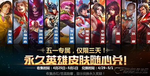 赤红勋章及苍蓝勋章在后续的五五开黑节活动也会有产出,可以在兑换专属头像框等奖励,英雄及皮肤兑换仅在51假期三天开放哦!