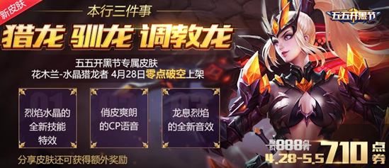 限时折扣:710点券(4月28日~5月5日,为了庆祝五五开黑节的诞生,首周折扣将延长1天,在5月5日当天结束)