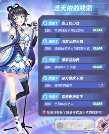 首先,洛天依的线索1触发条件为消消乐一次即可
