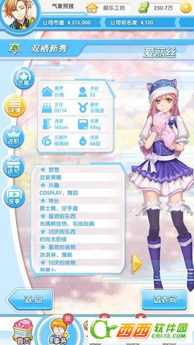 元气偶像季里面怎么查看艺人的喜好,在哪查看艺人喜好呢,艺人的喜好是什么。在元气偶像季中,玩家将扮演元气满满的少女经营一家明星经纪公司,从最初的小小菜鸟公司茁壮成长为娱乐圈大亨,把默默无闻的艺人培养成国际巨星。所以艺人才是玩家在游戏中生存的最重要的一环,而签约艺人之前是需要博取艺人的好感是非常重要的,很多小伙伴不知道在元气偶像季中艺人喜好在哪看,元气偶像季艺人喜好怎么看?下面就跟着西西小编一起来了解下!
