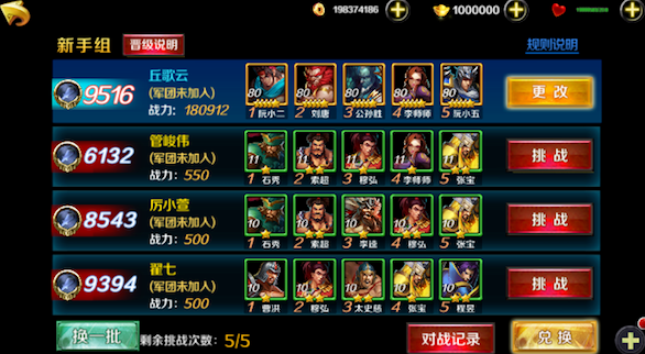 界面上显示三个可供挑战的对手,点击“换一批”可以更换为其他对手。