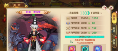 锻造完内甲并装备后,我们就可以利用内甲精元对其升级,升级后内甲的各项属性都会得到提升,无论从防御还是回复损毁最大值都会得到长足的提升