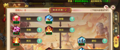 三种内甲的天赋大不相同,但角色收益都很高,以烈阳为例,该内甲主要强调攻击属性。内甲等级和品阶越高,可以获得的技能点越多。