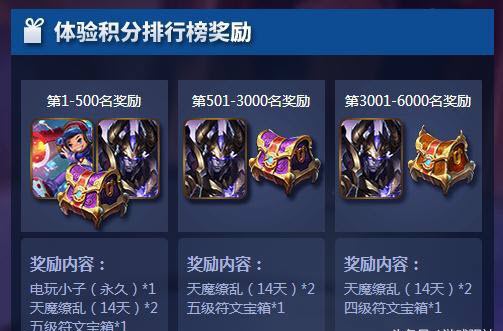 有体验服的小伙伴们注意了,绑定正式服账号后,如果你的体验积分排名靠前是可以获得奖励的,这个赛季前500名可以获得鲁班七号的电玩小子永久皮肤(赛季结束后发放到正式服账号)!另外体验币还可以兑换钻石、铭文碎片以及英雄或皮肤碎片,兑换后这些奖励都将发放到你绑定的正式服账号上!