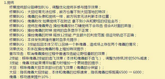 1.首先来看看还没上线正式服的庞统,bug太多此次天美一口气修复了9个。另外移除了很多击飞效果,无疑是次大削,不过这英雄还没上线正式服就不多说了