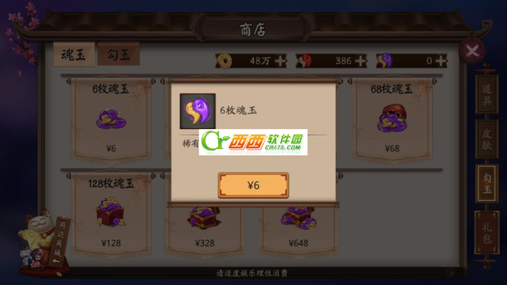 在购买礼包的时候魂玉不足会自动弹出到魂玉的购买界面,自己可以自行选择购买的魂玉多少。