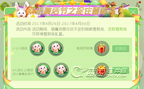 活动内容:活动期间,猎魔地图中会不定时刷新雪莉兔,击败雪莉兔可获得雪莉兔礼盒。