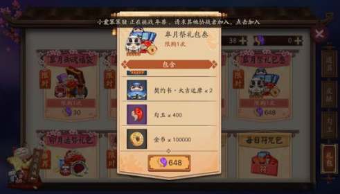 阴阳师皐月祭礼包壹/贰/叁多少钱?