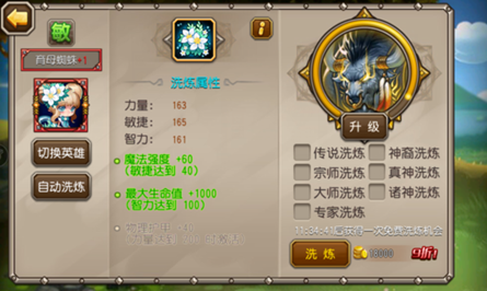 育母蜘蛛的洗炼偏向生存,总体来说还不错。40敏捷带来的魔法强度增加可有可无吧,毕竟育母蜘蛛的魔法技能就只有一个“种子爆弹”而已。推荐重点洗力量和智力,特别是洗高力量属性增加生存能力。