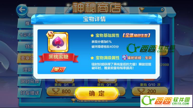 目前天天酷跑黑桃蜜糖的获得方法只有唯一的一种,就是在时空要塞中累积时空金杯,然后再利用时空金杯来进行兑换。兑换地址在天天酷跑-神秘商店-要塞兑换-800*时空金杯。
