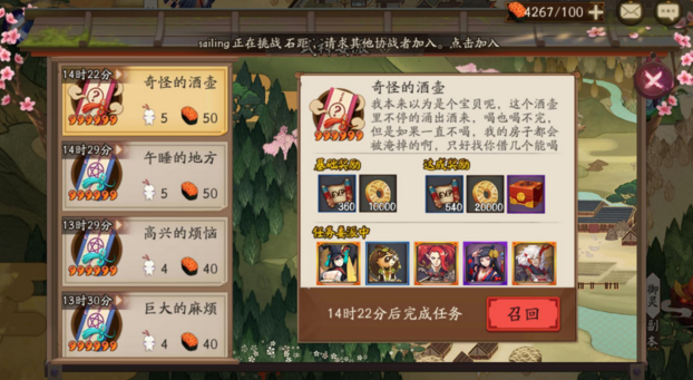 式神委派巨大的麻烦派遣式神推荐:凤凰火,古笼火,灯笼鬼