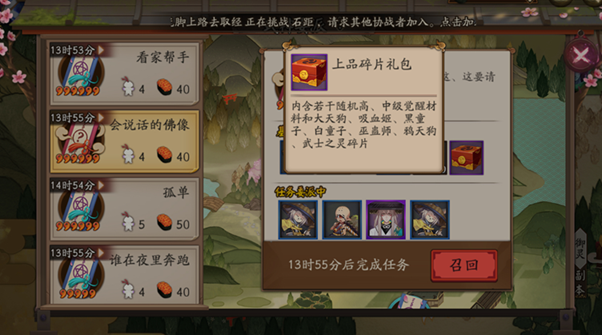 奖励:觉醒材料、大天狗碎、吸血姬、黑童子、白童子、巫蛊师、鸦天狗、武士之灵碎片