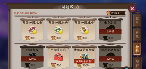 阴阳寮商店新增御魂&觉醒1小时加成,会长或者副会长购买后全寮即可获得收益~每周限购一次。