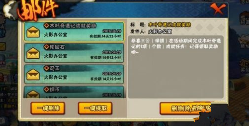 活动内容:玩家每日可开启1次木叶奇遇记的探索之旅,探索中会遇到各类奇遇事件(忍术对战、老师任务、大宝箱、三代心愿等);完成每个奇遇事件可以获得一定探索进度,进度达到50%和100%时可分别领取一份奖励;活动期间,所有探索进度会计入成就,满足条件后可以兑换成就奖励。