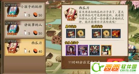 玩家如果接到西瓜刀式神委派任务,可以根据提示,选择自己的妖刀姬、兵俑和犬神式神,委派出去,一定时间后,就可召回式神获得奖励了。