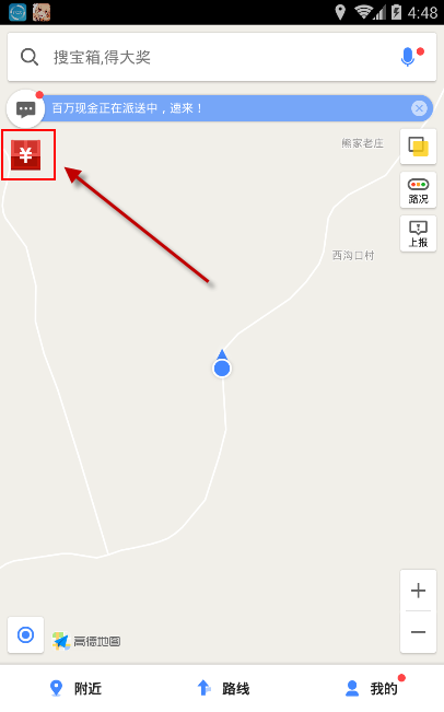 活动入口在高德地图app首页左上角的红包图标那里,点击即可进去活动页面
