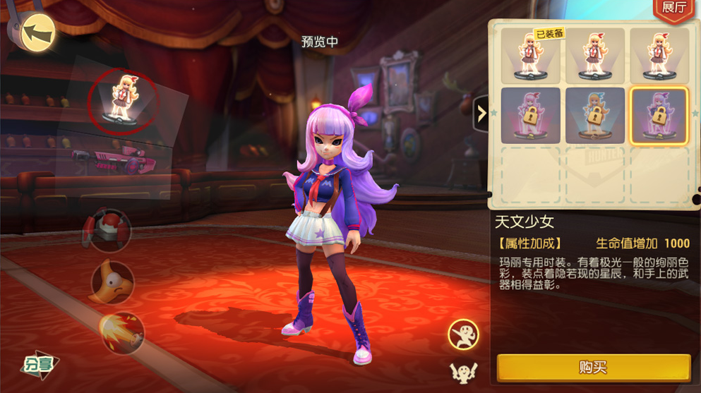 玛丽的“天文少女”新时装,有着极光一样的绚丽色彩,装点着若隐若现的星辰,和手上的武器相得益彰。
