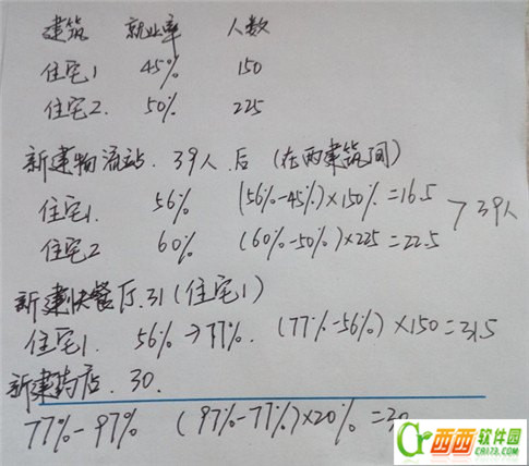 原因正在于密集的建筑群体,尤其是住宅,比如一个服务类建筑覆盖了3个住宅,分别是1号、2号、3号,建筑需求的员工数为40,那么这个建筑的员工40人正是这些住宅中的其中,比如1号住宅中所出,1号建筑的就业率增高了,2号和3号住宅的建筑的就业率肯定就不会在上升。