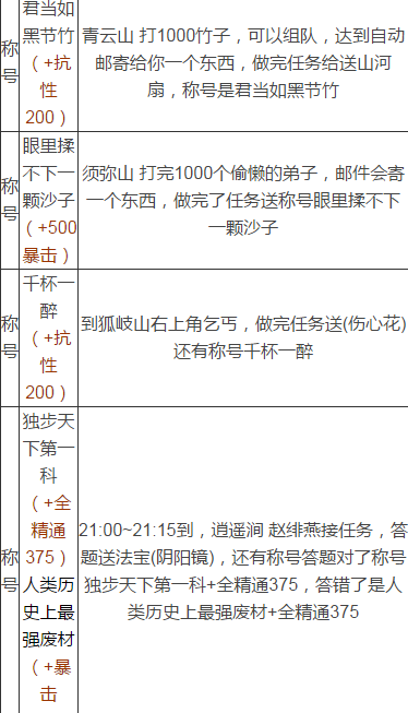 10、周一仙隐藏任务,120级后完成帮派任务最后一环后,有几率邮箱会收到任务物品,完成任务送称号【乘物游心看尽天下事 命中+1000】。